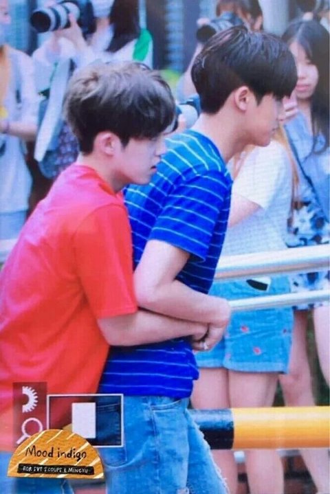 Just imagine how scared was him because of those camerasㅋㅋㅋ Mingyu kept holding on Seungcheol's hands tightly and Seungcheol kept on burying his face on Mingyu's back.. Judging by his expressions, it seems like he was really afraid of those cameras.. I can't find any pictures of them smiling in today's previews.. Because they were keeping their poker-face on, the fansite masters said something like "Your Oppa charisma is exploding~~", something like thatㅋㅋ And because Seungcheol kept hiding behind Mingyu's back, they found it cute and said "Where did Seungcheol go?~~"ㅋㅋㅋ F*ck.. I'm getting goosebumps..